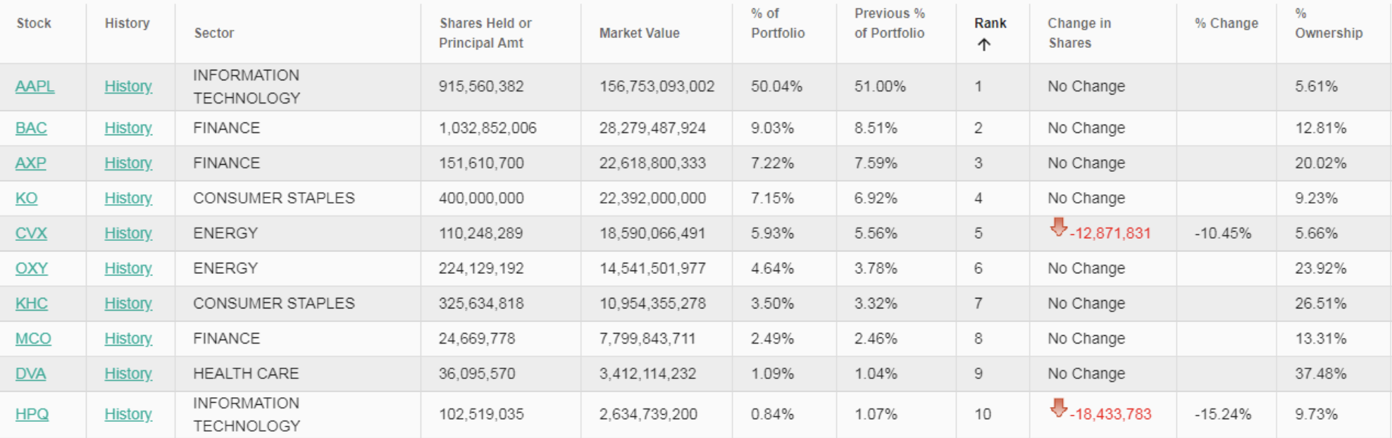 “股神”巴菲特旗下伯克希尔·哈撒韦公布了最新持仓情况。