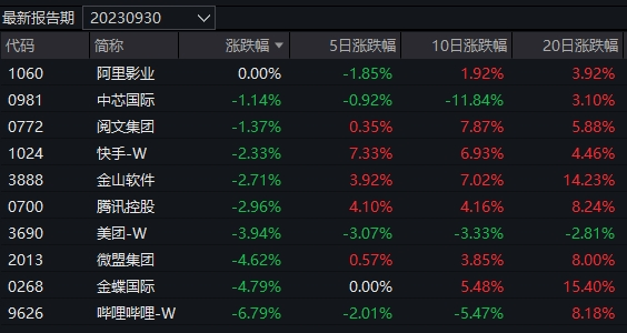 嘉实港股互联网产业核心资产重仓股情况如下。