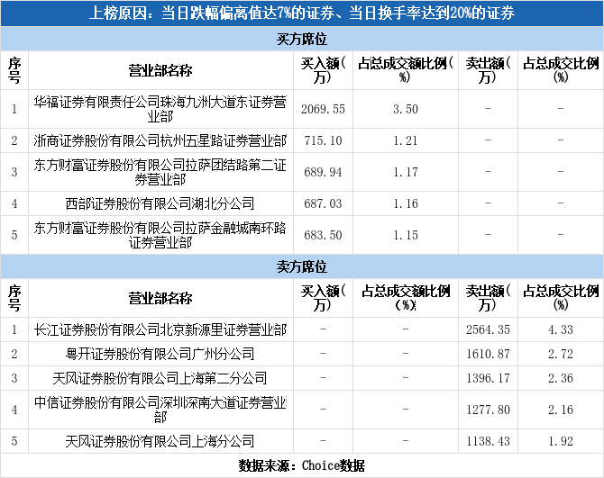 买五为东方财富证券拉萨八一路证券营业部,该席位买入683.50万元。近三个月内该席位共上榜925次,实力排名第7。东方财富证券拉萨八一路证券营业部今日还参与了多伦科技(净买额3060.82万元),圣龙股份(净买额-2948.87万元),宏昌电子(净买额1747.06万元)等15只个股。