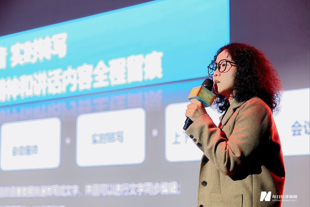 科大讯飞听见业务线咨询总监张丽,结合科大讯飞听见业务线的发展背景,着重展示了AI技术在会议转写、语音识别和内容生成中的应用。作为案例,她分享了科大讯飞如何利用迅飞星火大模型提升内容生成效率,包括自动化总结提取、文本校对和智能优化等功能。
