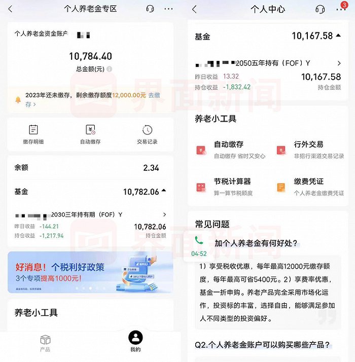 “个人养老金账户平时也不会看,也就是年末要继续缴纳时才会点开。一打开就看到亏损,很难不动摇自己继续购买的想法。”她向界面新闻表达了自己的疑惑。
