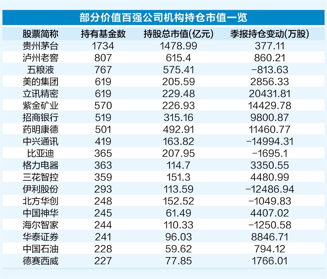 (原标题:行业龙头领衔主板价值百强公司 机构重仓持有)