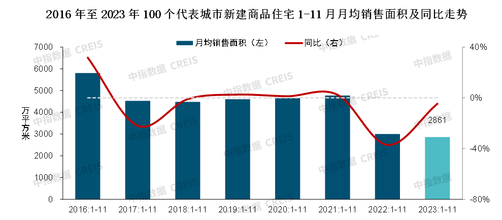 2023年,房地产市场供求关系发生重大变化,各级政府部门频繁优化楼市政策力促房地产市场平稳运行,政策环境已接近2014年最宽松阶段。中指研究院数据显示,1-11月重点100城新建商品住宅销售面积同比下降约5%,1-10月重点15城二手房销售规模同比增长35%。