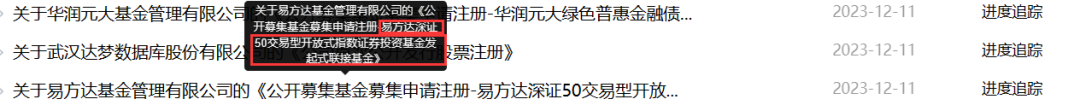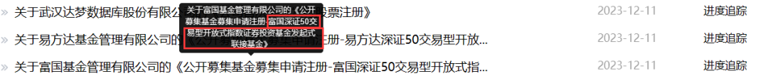 首批深证50ETF上市当日盘后, 两家基金公司分别上报了易方达深证50ETF联接发起式基金、富国深证50ETF联接发起式基金,且申报材料均获接收。