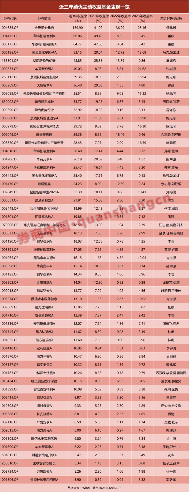 这些基金近三年每年均实现正收益!榜首收益率近140%