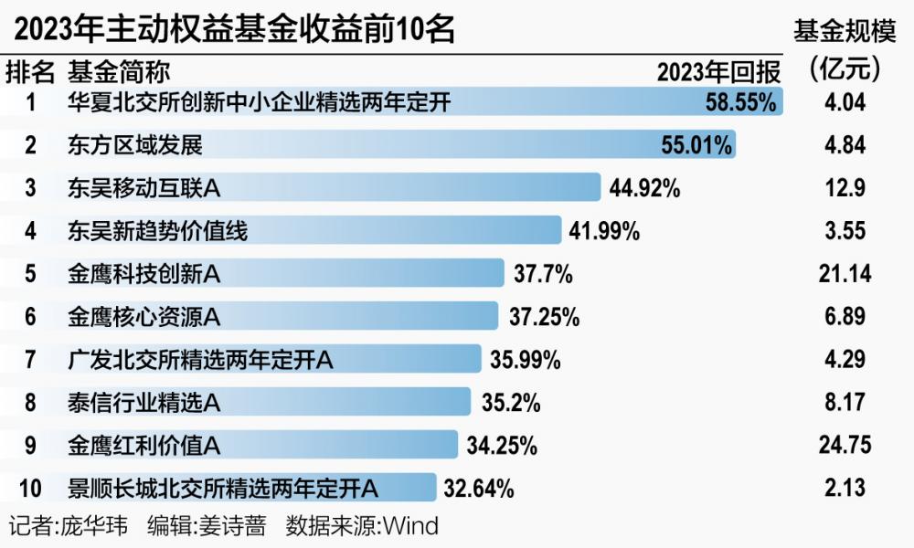2023年主动权益基金收益TOP10为: