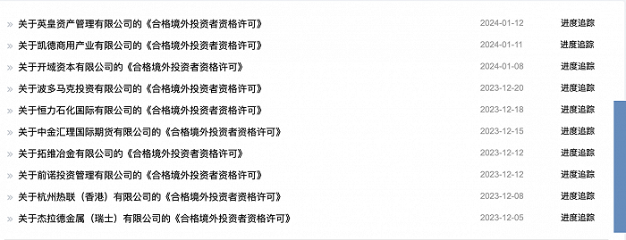 证监会官网显示,1月12日,英皇资产管理有限公司(下称“英皇资管”)的《合格境外投资者资格许可》已被接收。与之一并被接收的还有开域资本、圆牧资本等多家境外机构的QFII申请。