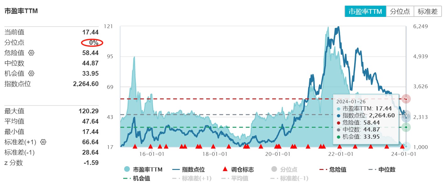 Wind数据统计,截至2024年1月26日,CS电池指数(931719.CSI)最新估值为17.44倍PE,位于0%历史分位数,即比近10年间的所有时间都便宜,绝对值已位于历史底部。