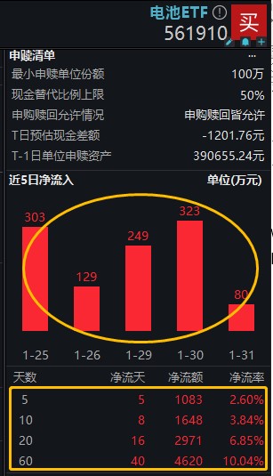 【资金借道电池ETF(561910)低位布局,单月份额扩容近10%引领同类!】