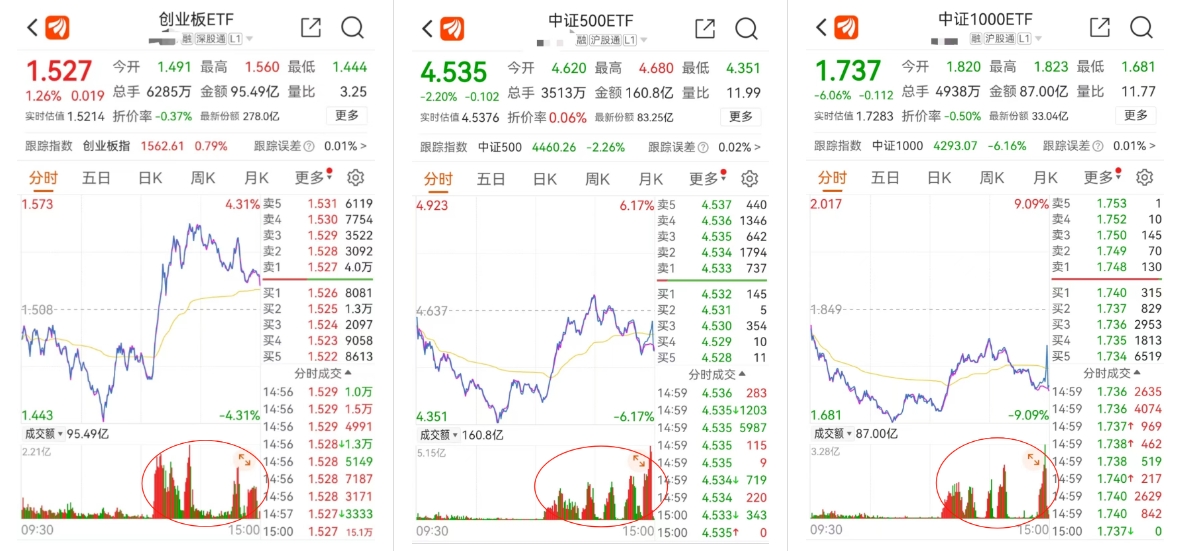 除了消息面释放积极信号外,资金也在午后出现了进场的现象,中证500ETF、创业板ETF、中证1000ETF成交额都出现了明显的放量。