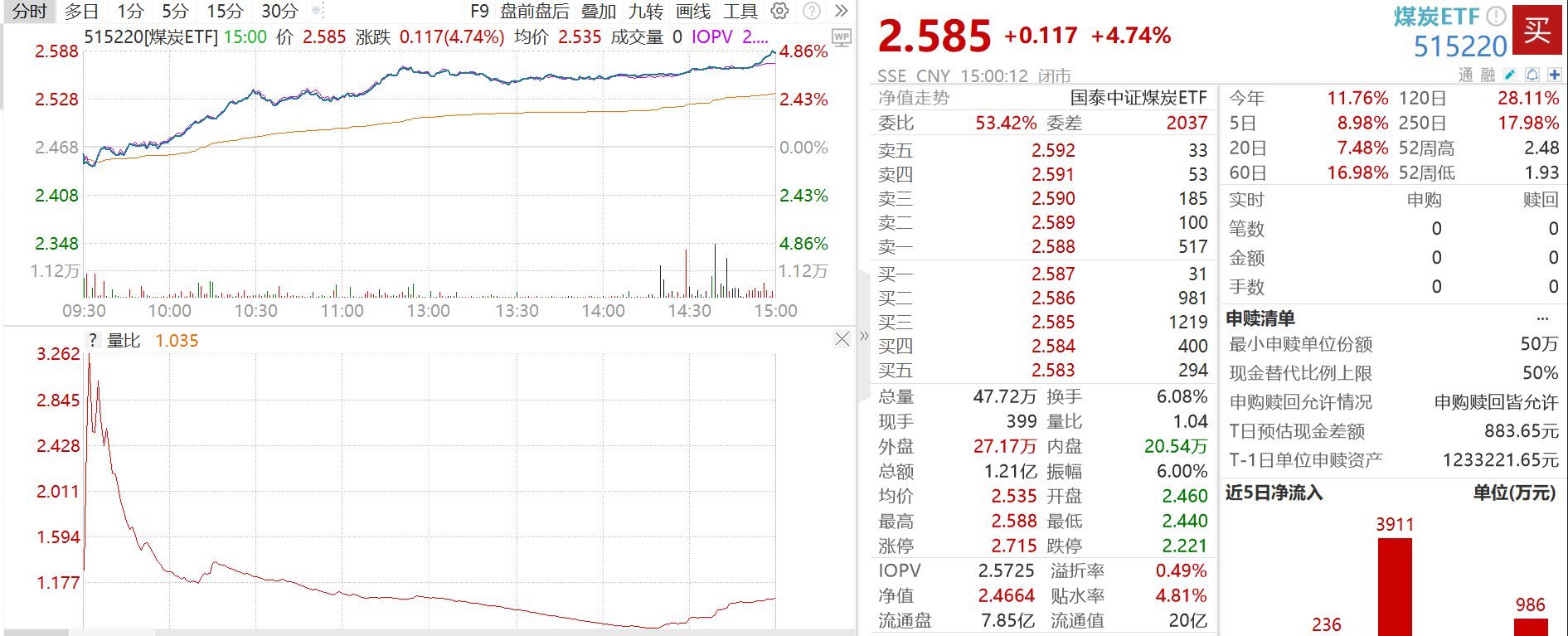 煤炭ETF(515220)大涨4.74%点评