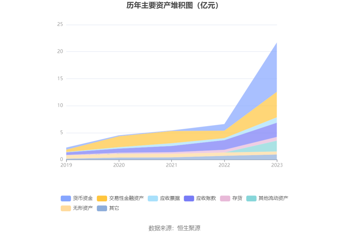 资产重大变化方面,截至2023年年末,公司货币资金较上年末增加641%,占公司总资产比重上升23.39个百分点;应收账款较上年末增加48.52%,占公司总资产比重下降14.72个百分点;其他流动资产较上年末增加57469.19%,占公司总资产比重上升9.26个百分点;无形资产较上年末减少9.25%,占公司总资产比重下降6.62个百分点。