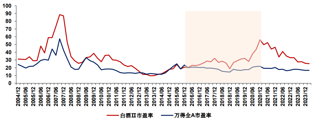 图表3:白酒和万得全A的市盈率情况