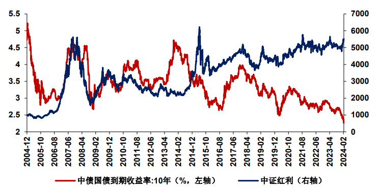 图表1:10年期国债利率和中证红利走势