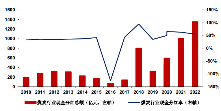 图5:煤炭行业现金分红总额及现金分红率