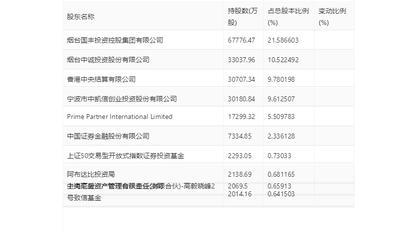 年报显示,2023年年末公司十大流通股东中,新进股东为上证50交易型开放式指数证券投资基金、上海高毅资产管理合伙企业(有限合伙)-高毅晓峰2号致信基金,取代了三季度末的孙惠刚、HHLR管理有限公司-中国价值基金(交易所)。在具体持股比例上,香港中央结算有限公司、阿布达比投资局持股有所上升。