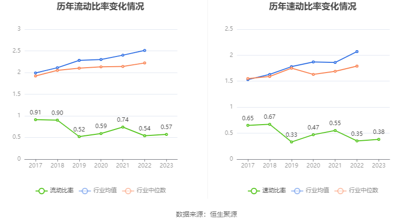 2023年,公司流动比率为0.57,速动比率为0.38。