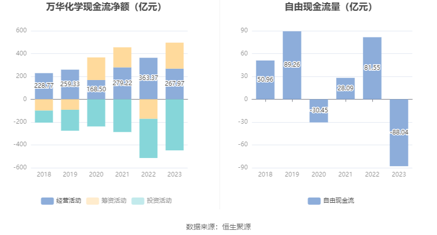进一步统计发现,2023年公司自由现金流为-88.04亿元,上年同期为81.55亿元。