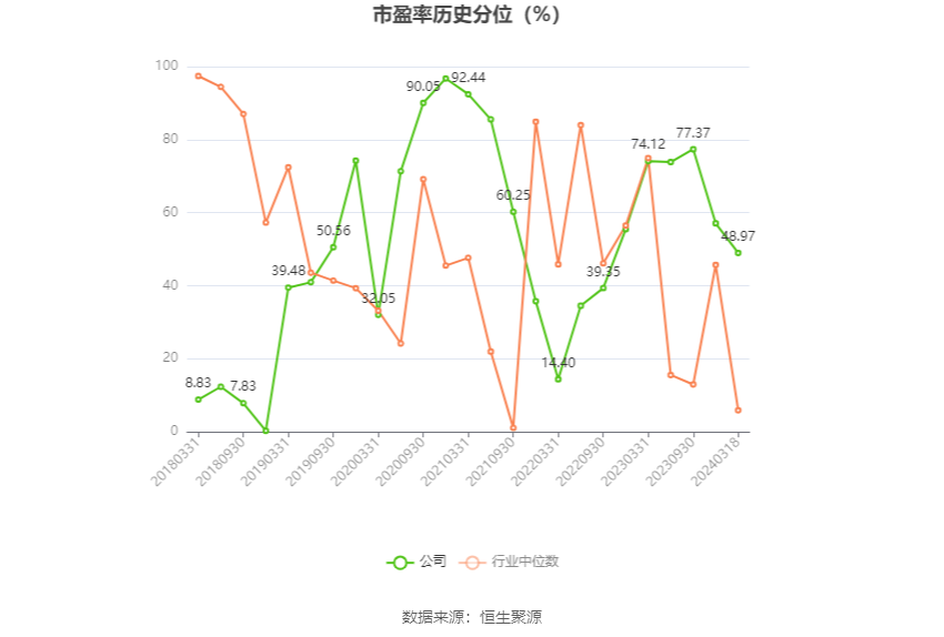 市盈率为负时,不显示当期分位数,会导致折线图中断。
