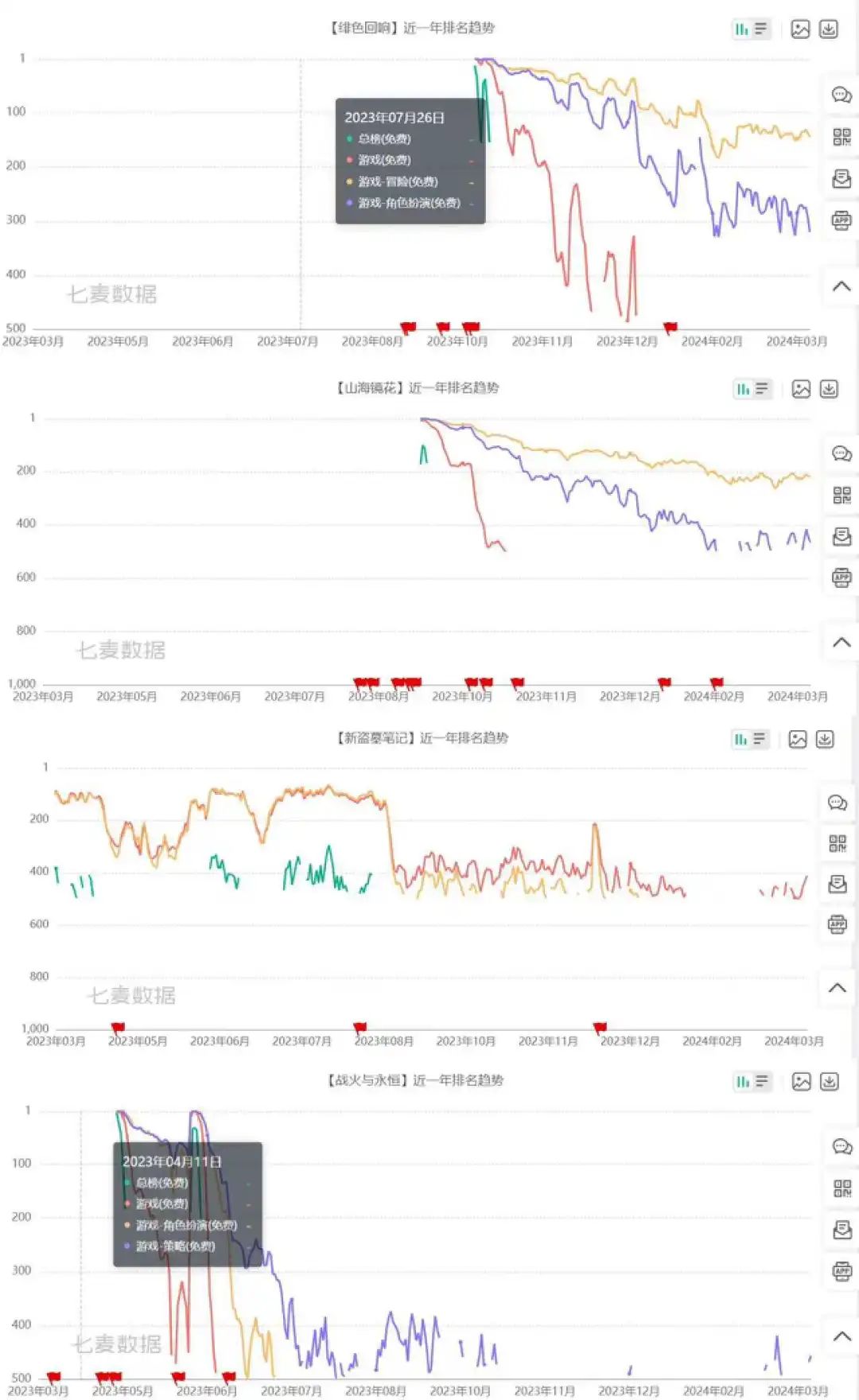 但这些自研游戏依然以“推出续作”为主,比如在《少年三国志》基础上,推出《少年三国志2》和《少年三国志零》。《绯色回响》《山海镜花》《新盗墓笔记》《战火与永恒》等游戏虽然上线,但并未在市场中占据有利地位。