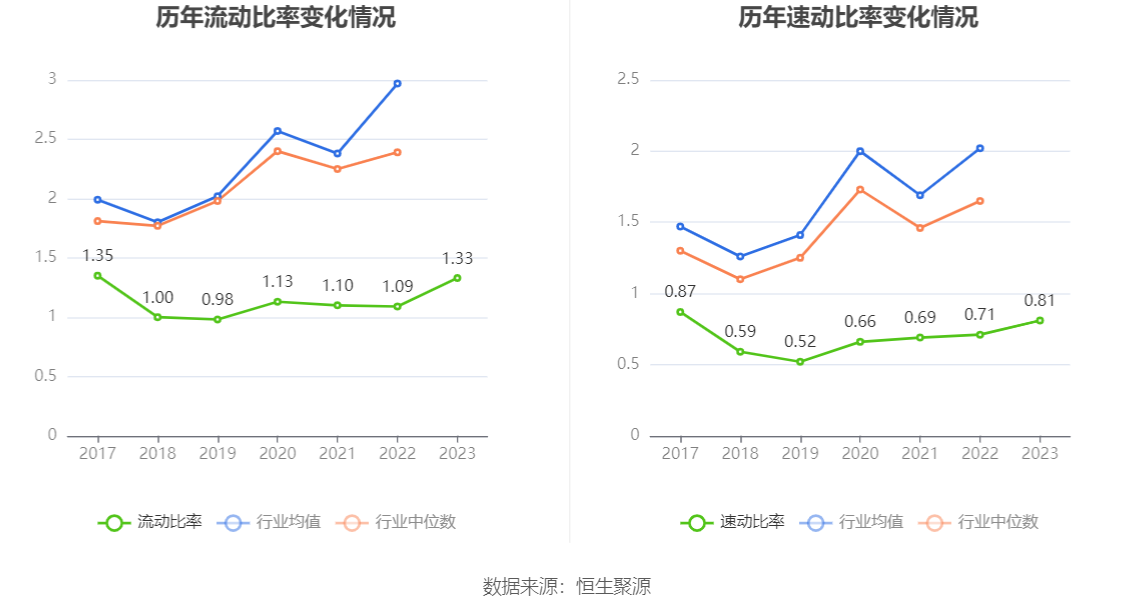 2023年,公司流动比率为1.33,速动比率为0.81。
