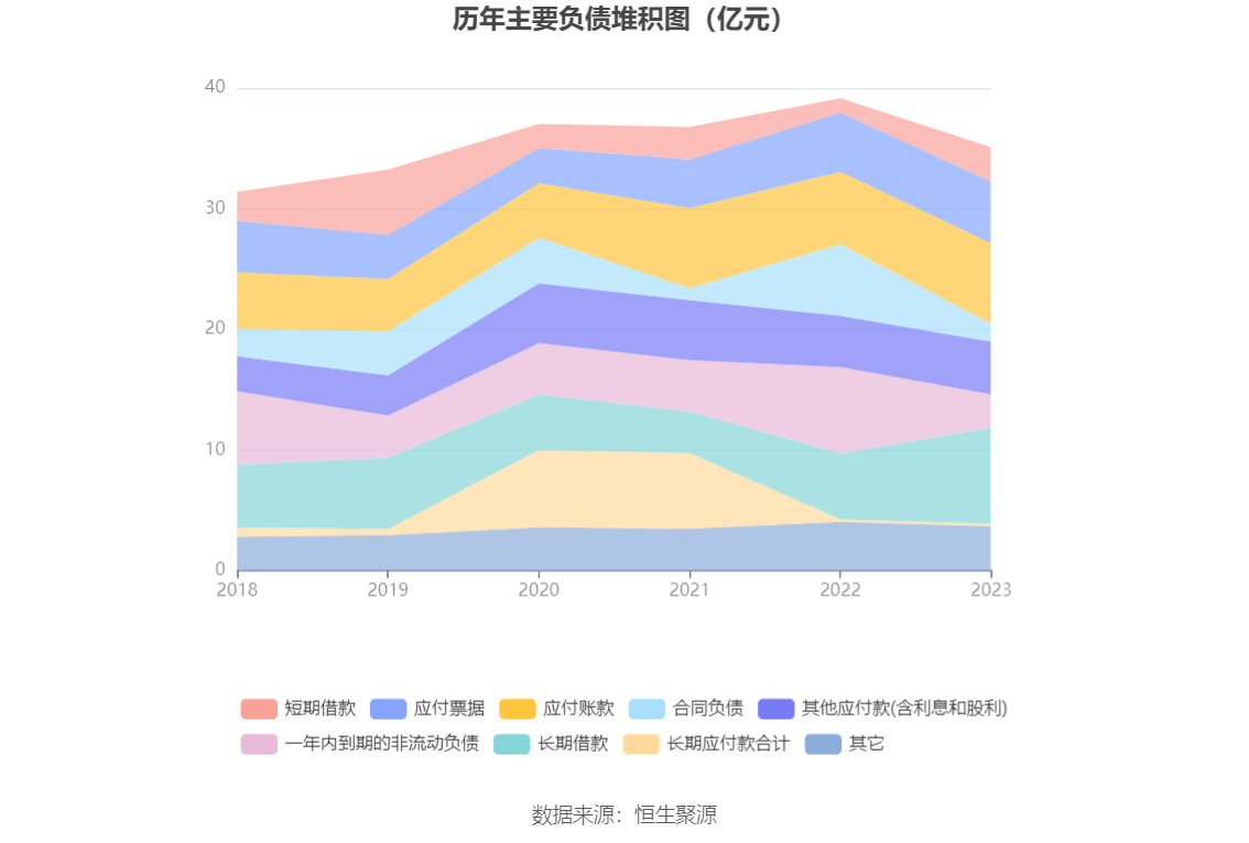 负债重大变化方面,截至2023年年末,公司合同负债较上年末减少74.86%,占公司总资产比重下降5.38个百分点;一年内到期的非流动负债较上年末减少61.84%,占公司总资产比重下降5.38个百分点;长期借款较上年末增加46.50%,占公司总资产比重上升3.05个百分点;短期借款较上年末增加140.60%,占公司总资产比重上升2.00个百分点。