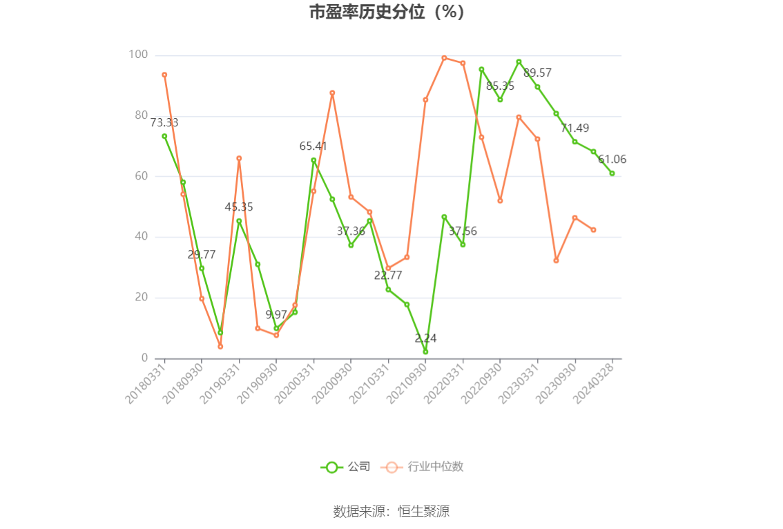 市盈率为负时,不显示当期分位数,会导致折线图中断。