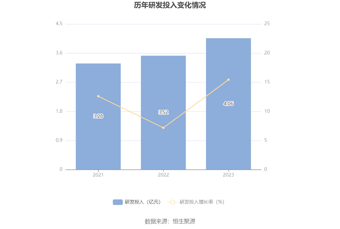 2023年全年,公司研发投入金额为4.06亿元,同比增长15.44%;研发投入占营业收入比例为5.01%,相比上年同期上升0.32个百分点。