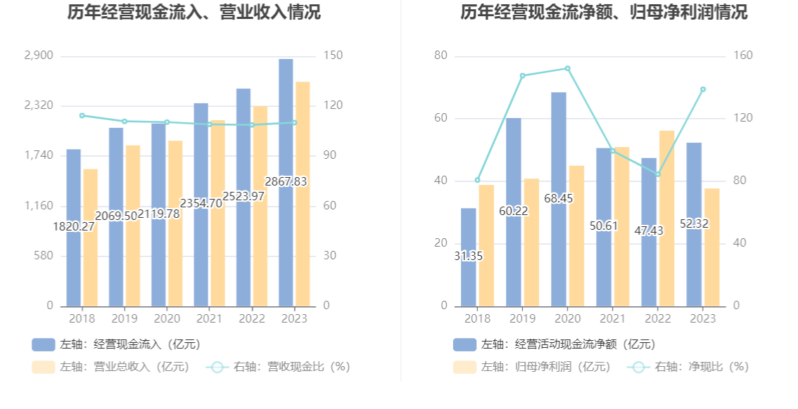 2023年,公司营业收入现金比为110.18%,净现比为138.84%。