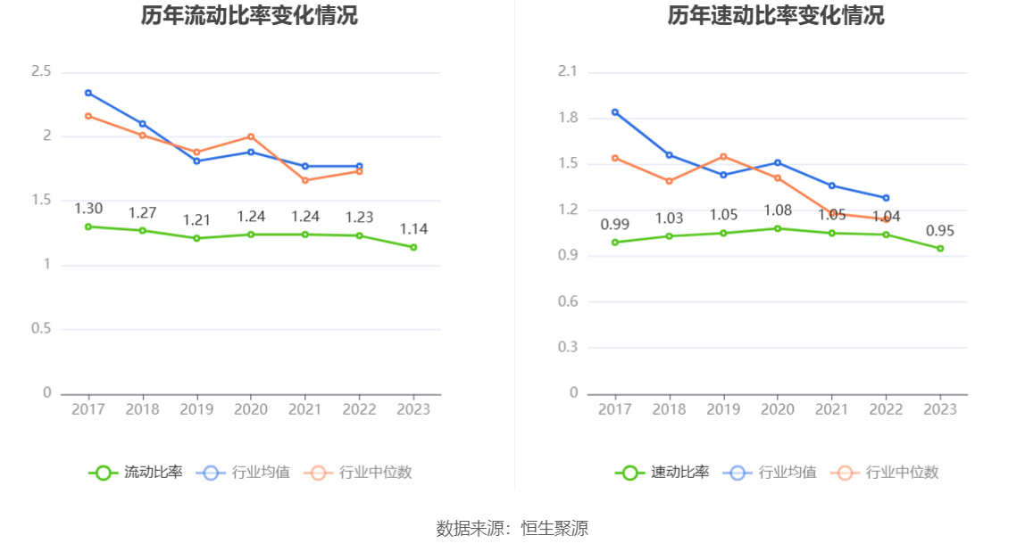 2023年,公司流动比率为1.14,速动比率为0.95。