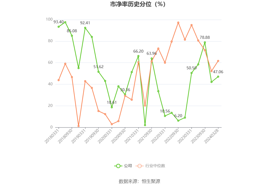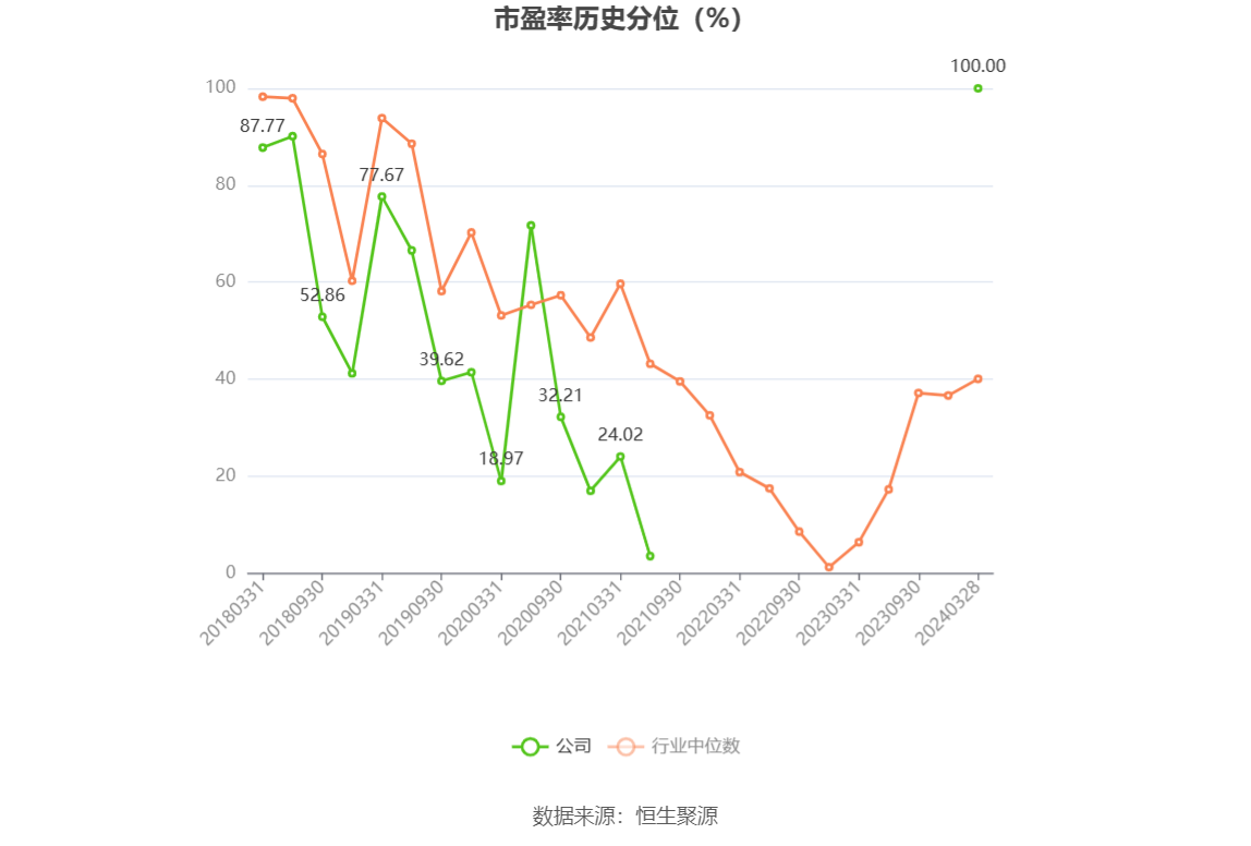 市盈率为负时,不显示当期分位数,会导致折线图中断。