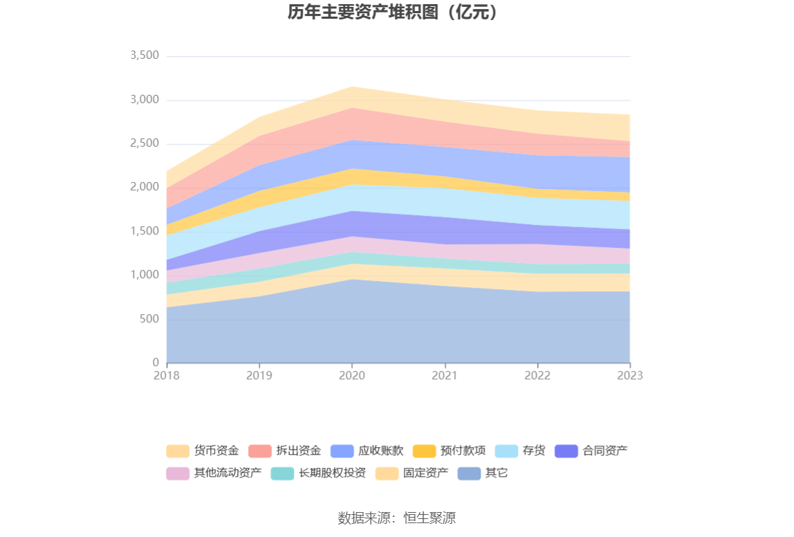 资产重大变化方面,截至2023年年末,公司拆出资金较上年末减少26.65%,占公司总资产比重下降2.18个百分点;发放贷款和垫款较上年末增加363.25%,占公司总资产比重上升2.05个百分点;其他流动资产较上年末减少23.75%,占公司总资产比重下降1.77个百分点;货币资金较上年末增加14.50%,占公司总资产比重上升1.50个百分点。