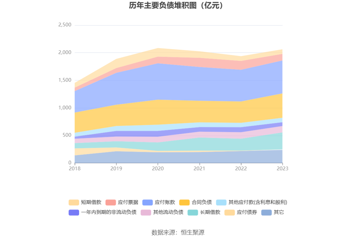 负债重大变化方面,截至2023年年末,公司长期借款较上年末增加42.71%,占公司总资产比重上升3.39个百分点;合同负债较上年末增加14.10%,占公司总资产比重上升2.16个百分点;应付票据较上年末减少24.86%,占公司总资产比重下降1.32个百分点;一年内到期的非流动负债较上年末减少24.36%,占公司总资产比重下降0.73个百分点。
