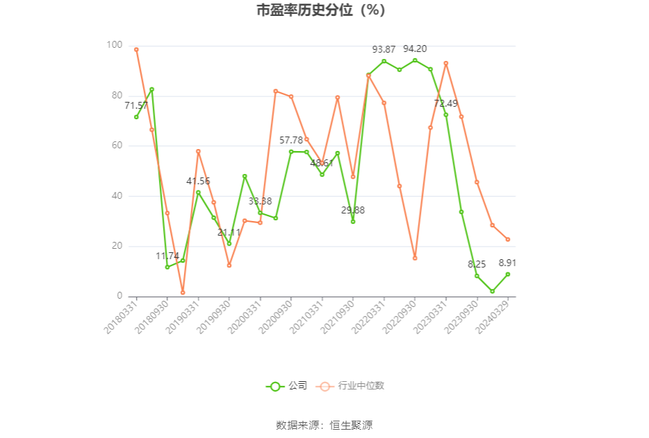 市盈率为负时,不显示当期分位数,会导致折线图中断。