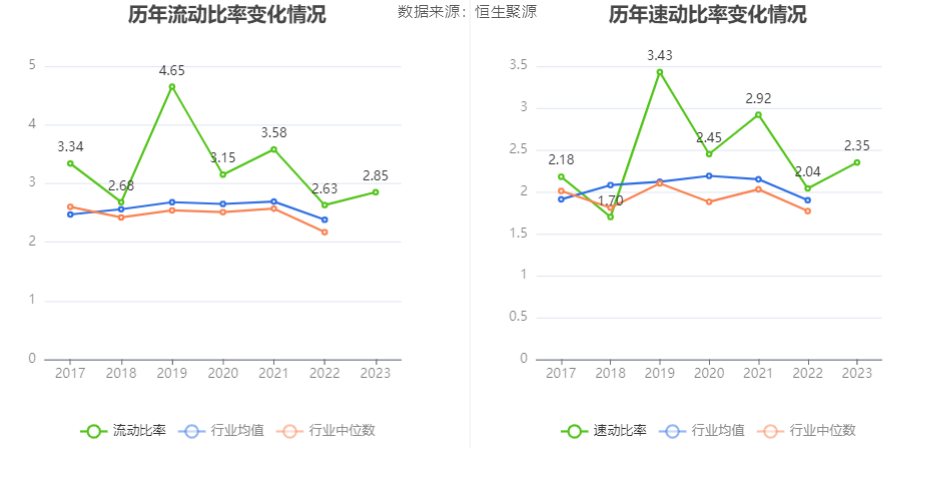 2023年,公司流动比率为2.85,速动比率为2.35。