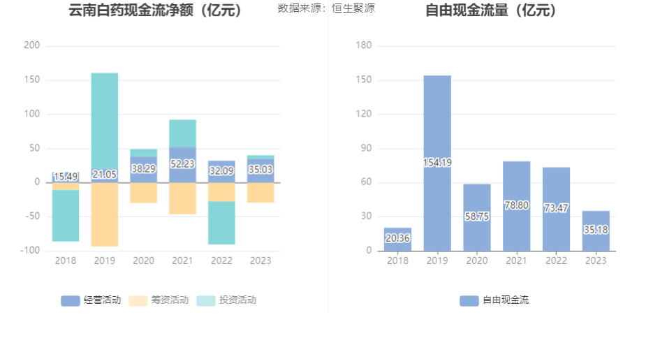 进一步统计发现,2023年公司自由现金流为35.18亿元,相比上年同期下降52.11%。