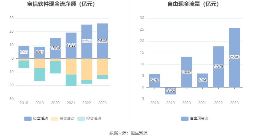 进一步统计发现,2023年公司自由现金流为25.80亿元,相比上年同期增长45.13%。