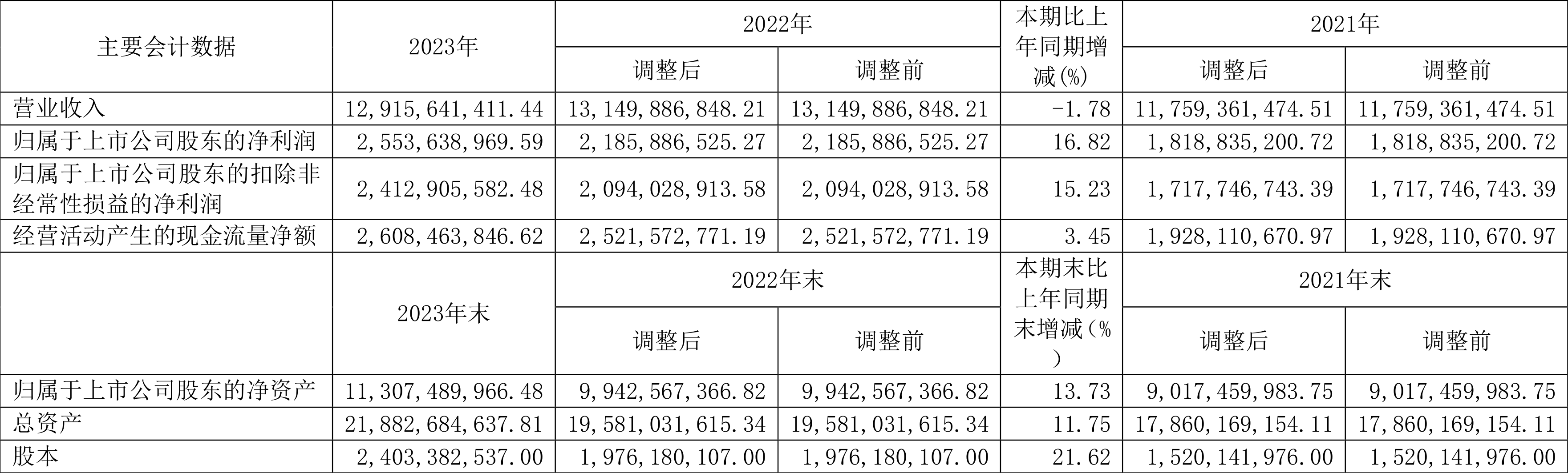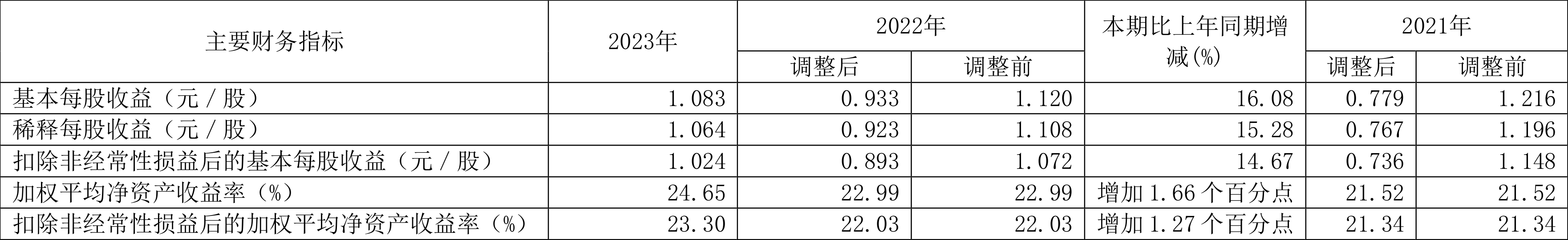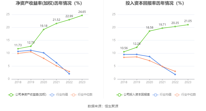 数据显示,2023年公司加权平均净资产收益率为24.65%,较上年同期增长1.66个百分点;公司2023年投入资本回报率为21.05%,较上年同期增长0.70个百分点。