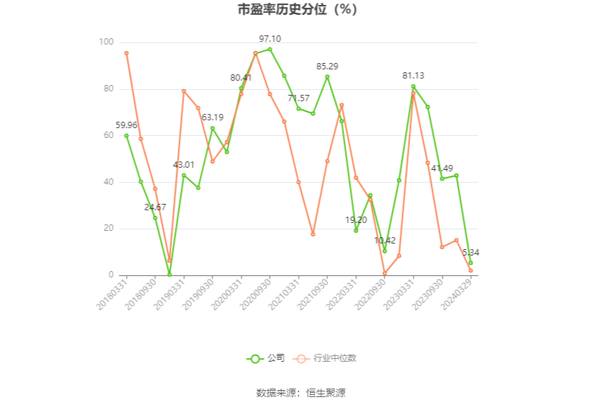 市盈率为负时,不显示当期分位数,会导致折线图中断。