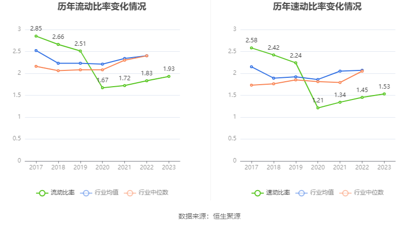 2023年,公司流动比率为1.93,速动比率为1.53。