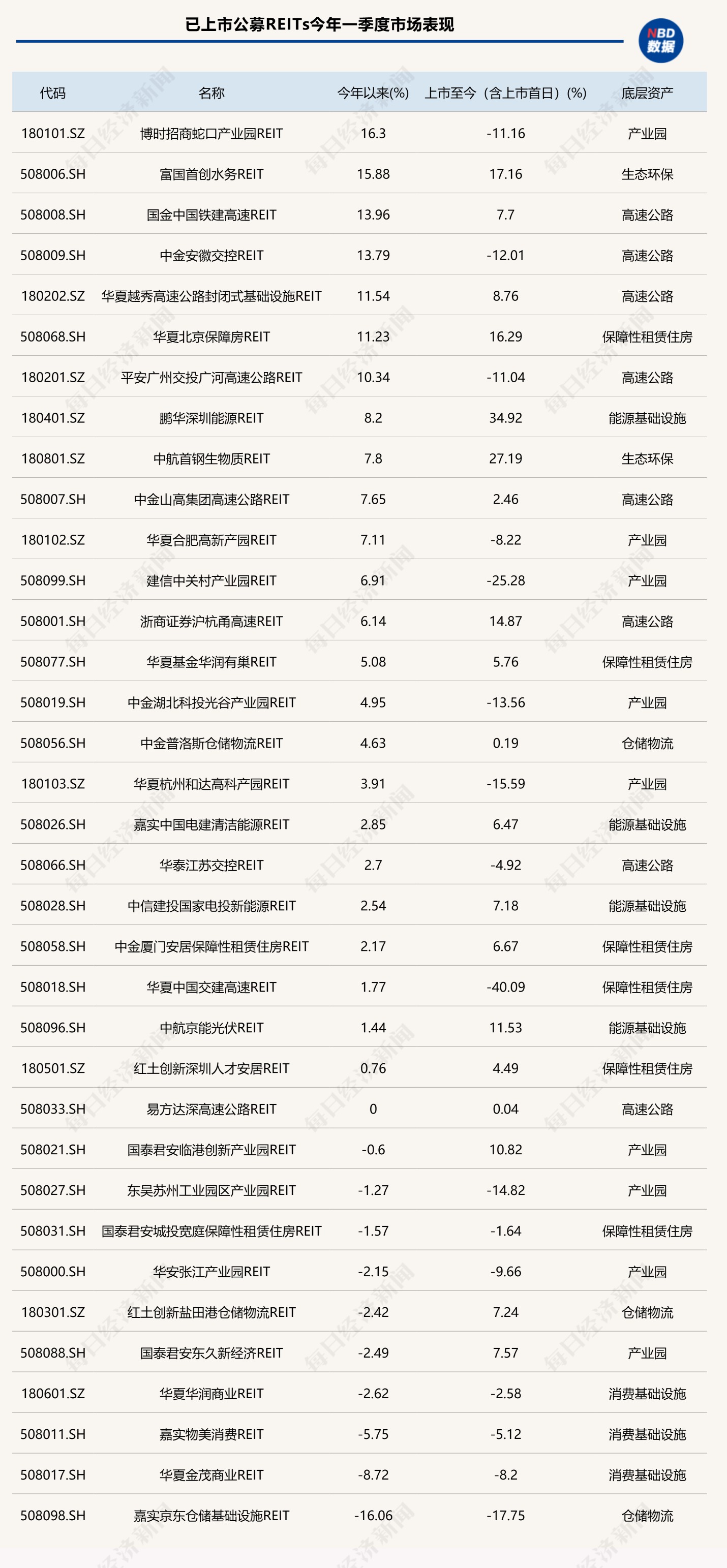 一季度多只产品涨幅超10%,高速公路REITs表现亮眼