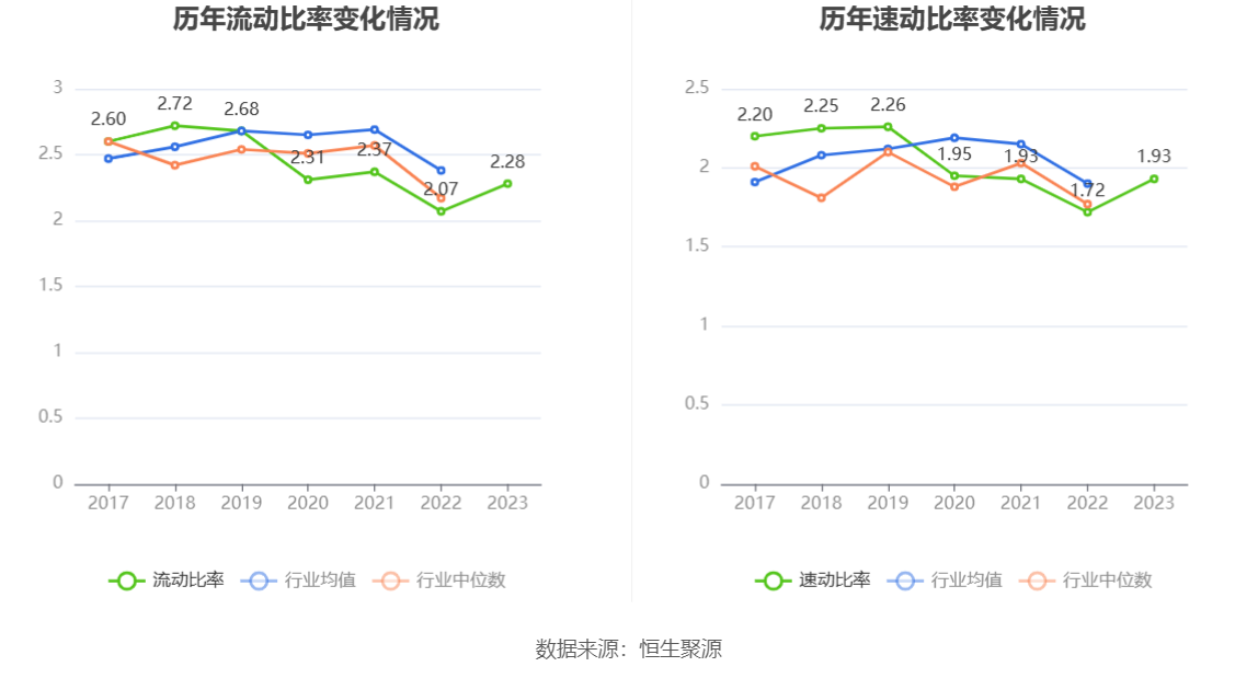 2023年,公司流动比率为2.28,速动比率为1.93。