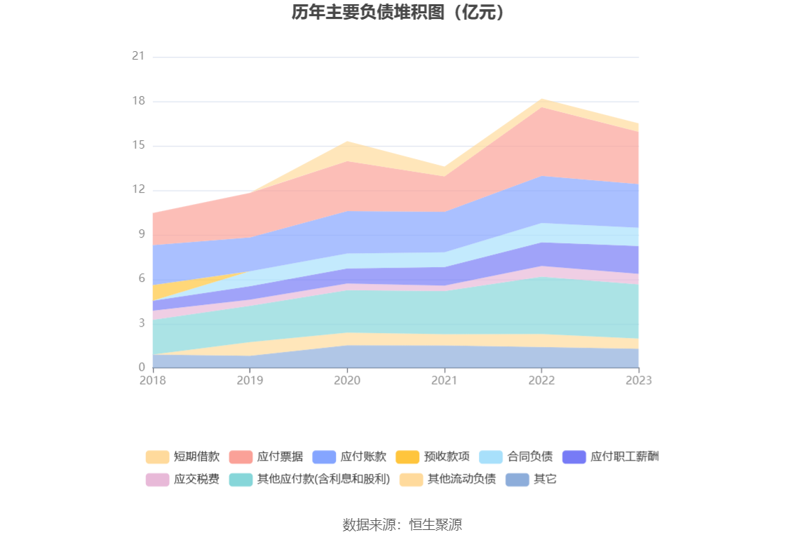 负债重大变化方面,截至2023年年末,公司应付票据较上年末减少23.68%,占公司总资产比重下降2.43个百分点;应付职工薪酬较上年末增加18.12%,占公司总资产比重上升0.58个百分点;应付账款较上年末减少7.50%,占公司总资产比重下降0.58个百分点;其他应付款(含利息和股利)较上年末减少5.45%,占公司总资产比重下降0.52个百分点。