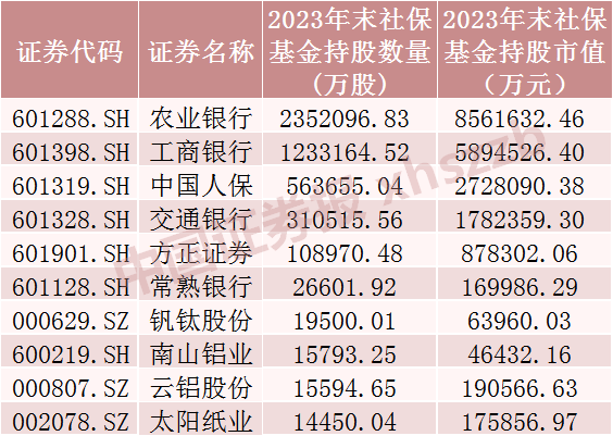 随着上市公司年报密集披露,社保基金2023年末重仓股及持股变动情况浮出水面。