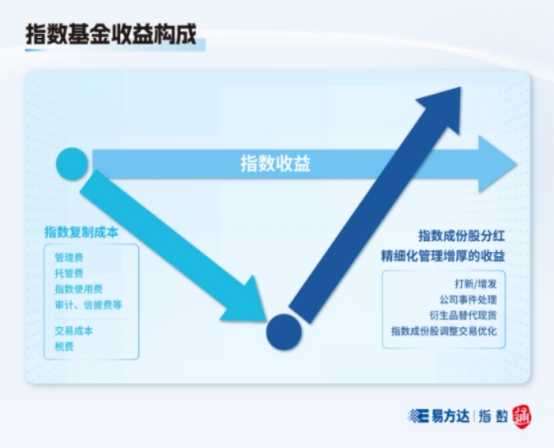 如果说精细化管理和成份股分红是为指数基金收益做“加法”,那么基金运作过程中产生的费用就是“减法”,费用越低,减得就越少,基金收益也能更高一些。因此,低费率的产品更有可能实现超额收益。