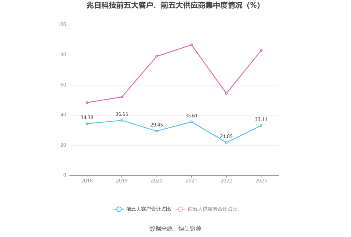 报告期内,公司前五大客户合计销售金额0.48亿元,占总销售金额比例为33.11%,公司前五名供应商合计采购金额0.46亿元,占年度采购总额比例为83.00%。