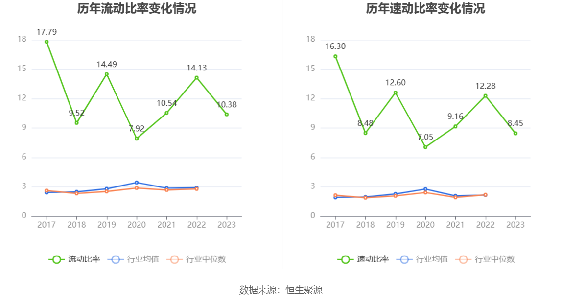 2023年,公司流动比率为10.38,速动比率为8.45。