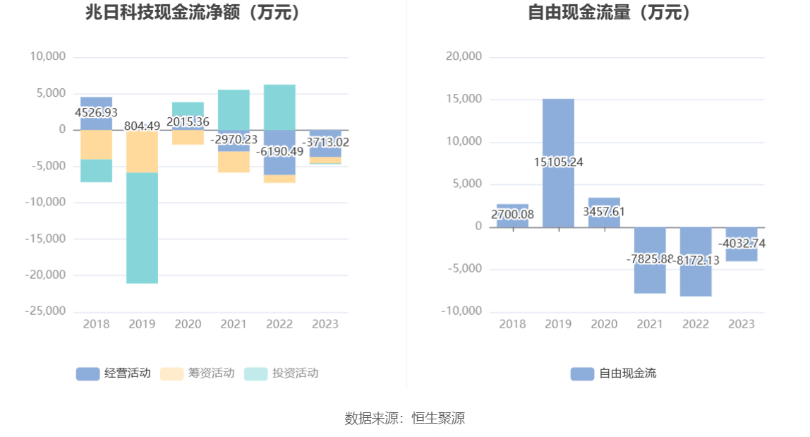 进一步统计发现,2023年公司自由现金流为-4032.74万元,上年同期为-8172.13万元。