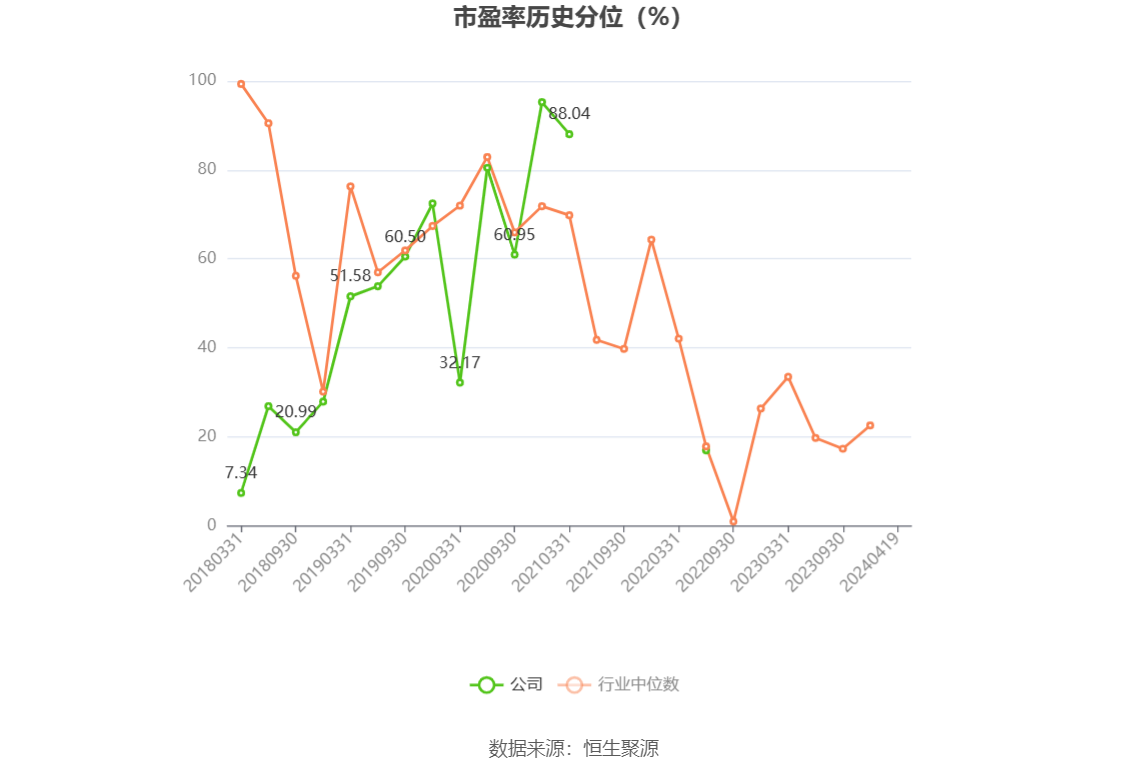 市盈率为负时,不显示当期分位数,会导致折线图中断。