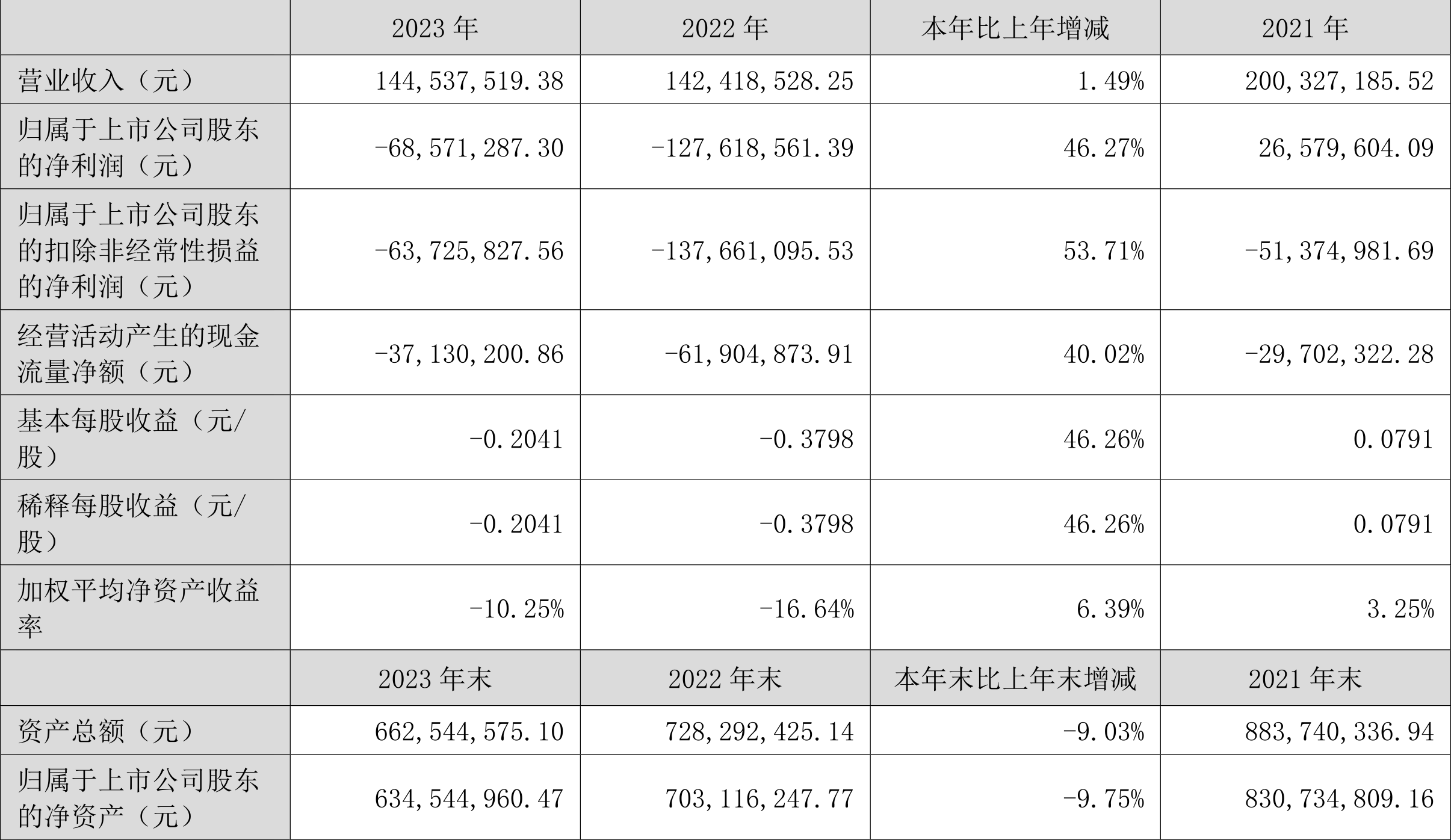数据显示,2023年公司加权平均净资产收益率为-10.25%,较上年同期增长6.39个百分点;公司2023年投入资本回报率为-7.59%,较上年同期增长6.90个百分点。